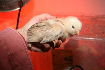Here is a pic of an older chick. This guy is about 10 days or so, and a much larger handful!